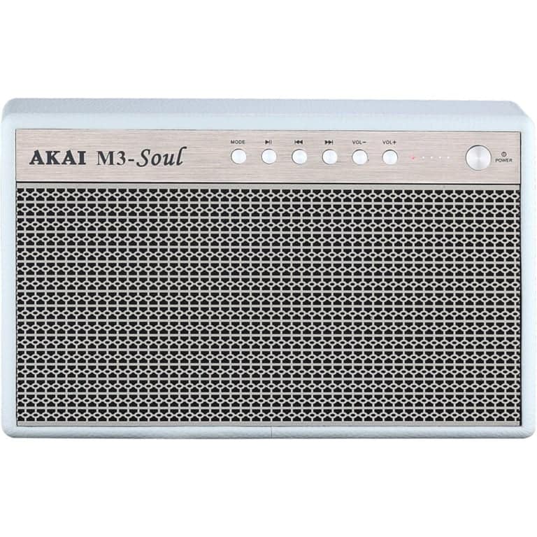 Akai M3 Soul. Potenza nominale RMS: 20 W. Tecnologia di connettività: Cablato e wireless, Connettore USB: USB Type-A. Colore del prodotto: Bianco, Design del prodotto: Rettangolo, Controllo del volume: Pulsanti. Uso consigliato: Universale. Tipo di batteria: Batteria integrata, Capacità della batteria: 6000 mAh, Tensione della batteria: 3,7 V – Prodotto nuovo