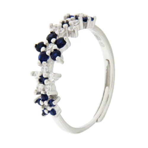 Anello Donna Argento CAN68B Anello da donna in argento 925 con fiori con pietre zirconi di colore bianco e blu, misura regolabile. Referenza: CAN68B Questo anello da donna in argento 925 è un piccolo capolavoro floreale, impreziosito da pietre zirconi bianchi e blu che evocano la luce e la serenità. La misura regolabile lo rende perfetto per ogni mano e ogni stile. Ideale per chi ama la delicatezza dei dettagli e l’eleganza che non passa inosservata.