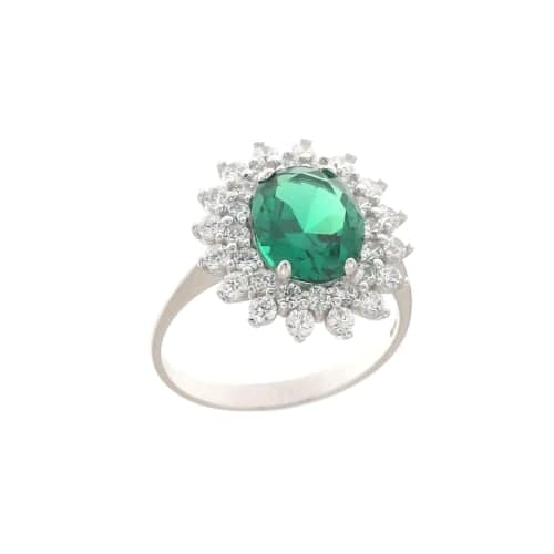 Anello Donna Oro Bianco Pietra Verde 803321732005