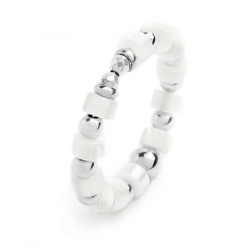 Anello Marlù 18AN117W Anello elastico composto da rondelle madreperla alternate a sfere in acciaio, su una delle quali è presente il logo Marlù. Referenza: 18AN117W Articolo spedito con astuccio originale Marlù