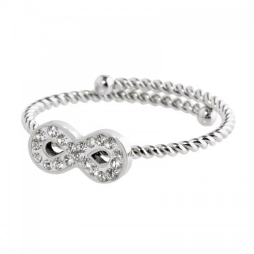 Anello regolabile in acciaio con infinito e cristalli. Misura regolabile S (da 11 a 15) – M (da 14 a 18). Referenza: 18AN049