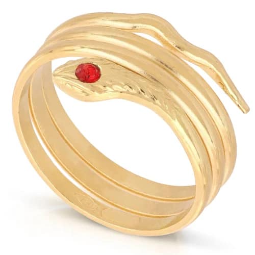 Anello da donna serpentina a 3 fili in oro giallo 750/00 (18 kt), con pietra rossa, larghezza 1 cm, peso 2,80 grammi. Referenza: 803321709024 L’anello è aperto, quindi la misura è facilmente regolabile. Non è quello che cercavi? Scopri tutti gli anelli da donna in oro o i nostri gioielli in oro