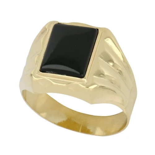 Anello Uomo in Oro Giallo con Pietra Nera 803321709324