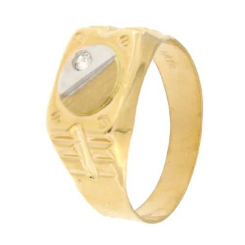 Anello Uomo Oro Giallo Bianco GL101275 Anello da uomo in oro giallo e bianco 750/00 (18kt) con pietra zircone. Lo spessore massimo dell’anello è di 1.10 cm. Il peso dell’anello è di 4.20 grammi. Referenza: GL101275