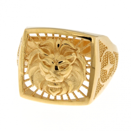 Anello Uomo Oro Giallo Testa di Leone GL101773 Anello da uomo in oro giallo 750/00 (18 kt). Anello con testa di leone, lavorazione traforata, dimensioni piastra 1.75 x 1.75 cm. Il peso dell’anello è di 8.70 grammi. Referenza: GL101773