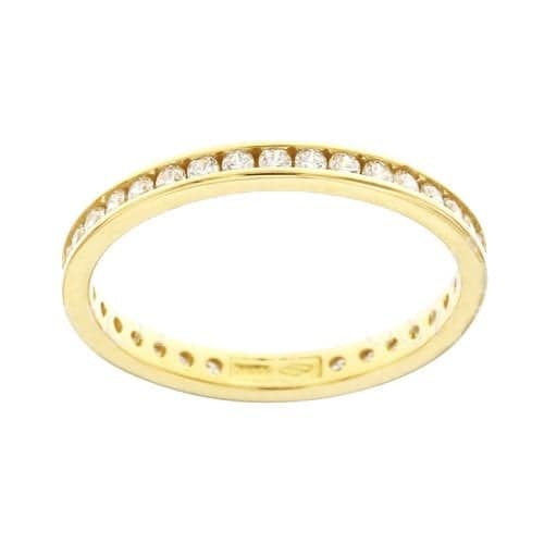 Anello da donna in oro giallo 750/00 (18 kt), modello veretta con pietre zirconi, peso 1,60 grammi. Referenza: 803321721515