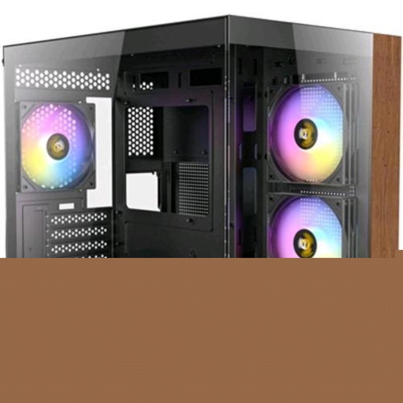 Antec cx600m wood argb cabinet midi tower gaming design a doppia camera pannello frontale e laterale in vetro temperato senza cuciture inserto laterale in legno marrone case nero