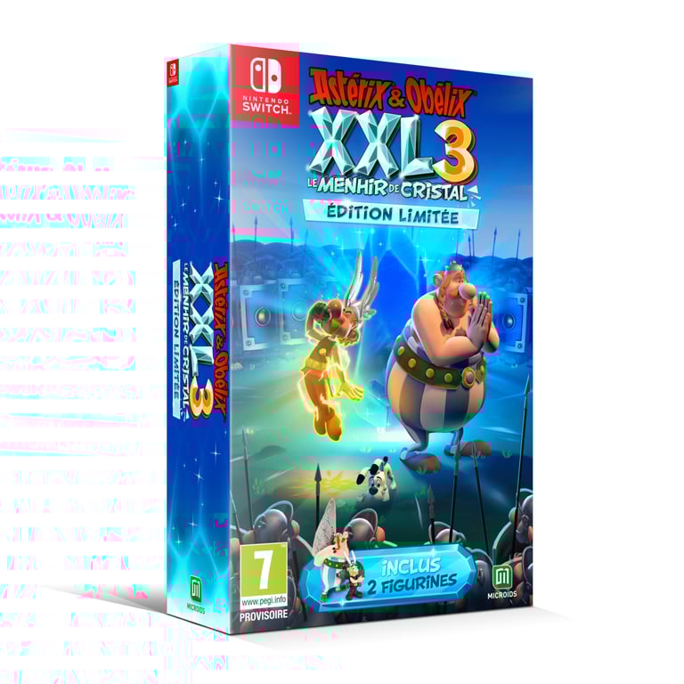 Gioca ad Asterix & Obelix XXL3 e The Crystal Menhir in edizione limitata su SWITCH! Questa edizione limitata contiene il gioco e due action figure di Asterix e Obelix La nostra storia inizia in un piccolo villaggio dell’Armorica (quello che tutti conoscete!). Tutti conducono una vita tranquilla e pacifica? Fino al giorno in cui il druido Getafix riceve una strana lettera. La lettera porta i nostri due eroi in un viaggio che non dimenticheranno presto (e nemmeno gli accampamenti romani che incontreranno lungo la strada!). Accompagnati dal misterioso menhir di cristallo, viaggiano in terre lontane e affrontano innumerevoli pericoli. Asterix & Obelix XXL3: Il Menhir di Cristallo è ricco di contenuti per deliziare il gallo che c’è in tutti noi! Battaglia, esplorazione, rompicapo e raccolta: una serie di possibilità ricche di azione vi aspettano! Completate le numerose missioni secondarie e cercate di raccogliere il maggior numero possibile di oggetti nascosti. E per la prima volta nella saga di Asterix & Obelix XXL, sarà disponibile una modalità cooperativa. Giocate in famiglia o con gli amici sullo stesso schermo: calatevi nei panni dei nostri due eroi e giocate mano nella mano per un divertimento ancora maggiore! In Asterix & Obelix XXL3: Il Menhir di Cristallo ritroverete naturalmente i vostri Galli preferiti, come Getafix, Assuredtourix e Abraracourcix, oltre a nuovi personaggi creati appositamente per il gioco: più siamo meglio è! Allora, Galli, siete pronti a partire per un’avventura e a prendere a schiaffi le legioni romane a mani nude? – Prodotto nuovo