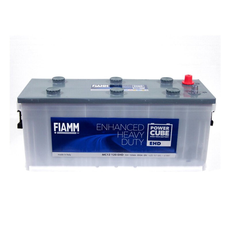 Tensione [V]: 12; Capacità batteria [Ah]: 120; Corrente prova a freddo EN [A]: 850; Lunghezza [mm]: 510; Larghezza [mm]: 175; Altezza: 228; Disposizione polare: 4; Tipo polo terminale: 1; Tipo listello di fondo: B03; Peso [kg]: 35,4
