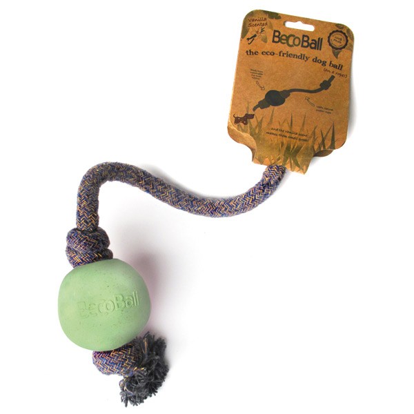 Palla da gioco con corda 100% naturale ed eco-friendly per cane, in materiale completamente atossico ricavato dal riso. La forma imperfetta del BecoRope lo fa rimbalzare e rotolare in modo casuale.