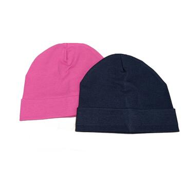 Berretta in cotone elasticizzato tinta unica con risvolto.Taglie: 1/2, 3/5, 6/9Colori: Fuxia, Blu