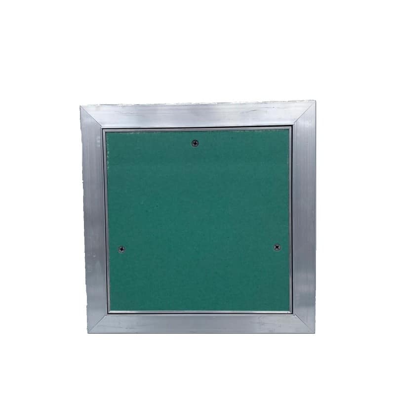 Botola d’ispezione con telaio robusto in alluminio assemblato con punzonatura Utilizzata per ispezionare soffitti e pareti in cartongesso Guarnizione in filtro anti polvere Lastra tipo idro, spessore 12,5 Cavetto di sicurezza in acciaio, sganciabile con mozzicone  Con dispositivo di apertura clic-clap Invisibile su pareti e controsoffitti