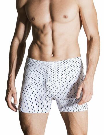 Boxer in fresco jersey di FILO di Scozia in fantasia cravatta (disegni e colori fantasia assortiti) con bottone.Taglie: 4/M – 5/L – 6/XL – 7/XXL – 8/XXXL