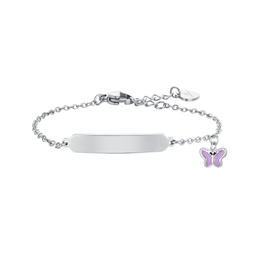 Bracciale Bimba Luca Barra JB205 Bracciale Bambina in acciaio con farfalla con smalto viola e piastra personalizzabile. Lunghezza: 14 + 2 cm. Misura farfalla: 7 x 5 mm. Spessore catena: 4 mm. Misura piastra: 29 x 5 mm. Fai brillare il polso della tua piccola principessa con il nostro Bracciale Bambina in Acciaio con Farfalla, Smalto Viola e Piastra Personalizzabile. Questo gioiello incantevole unisce l’eleganza delle farfalle, la vivacità del colore viola e la personalizzazione unica della piastra, rendendolo un tesoro speciale per la tua bambina. Referenza: JB205 Articolo spedito con garanzia ed astuccio originale Luca Barra