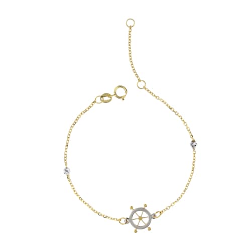 Bracciale Bimbi Oro Bianco Giallo GL102113 Bracciale da bambini in oro bianco e giallo 750 (18 KT). Bracciale a catena con timone. La lunghezza del bracciale è regolabile da 13 a 15 cm. Il peso del bracciale è di 0,90 grammi. Referenza: GL102113 Un gioiello simbolico che racchiude avventura e protezione. Questo bracciale da bambini in oro bianco e giallo 18 kt, con delicato timone, è il regalo perfetto per celebrare nascite, battesimi e momenti speciali da ricordare per sempre.