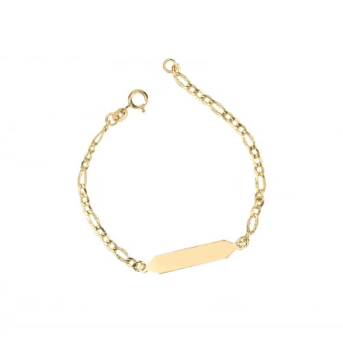 Bracciale Bimbi Oro Giallo GL101606 Bracciale da bambini in oro giallo 750/00 (18 kt). Bracciale a catena con targhetta personalizzabile con incisione. La lunghezza del bracciale è di 13 cm. Il peso del bracciale è di 1.10 grammi. Referenza: GL101606