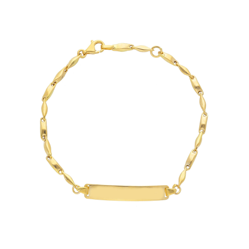 Bracciale Bimbi Oro Giallo GL101962 Bracciale da bambini in oro giallo 750 (18 KT). Bracciale a catena con targhetta personalizzabile con incisione. La lunghezza del bracciale è regolabile da 14 a 16 cm. Il peso del bracciale è di 3,70 grammi. Referenza: GL101962 Questo bracciale in oro giallo 18 kt è più di un semplice gioiello: è un simbolo d’amore, un dolce pensiero da dedicare a chi amiamo. La targhetta personalizzabile lo rende unico, pronto a custodire un nome, una data o una parola speciale. Un dono perfetto per celebrare un momento indimenticabile, da portare sempre con sé.