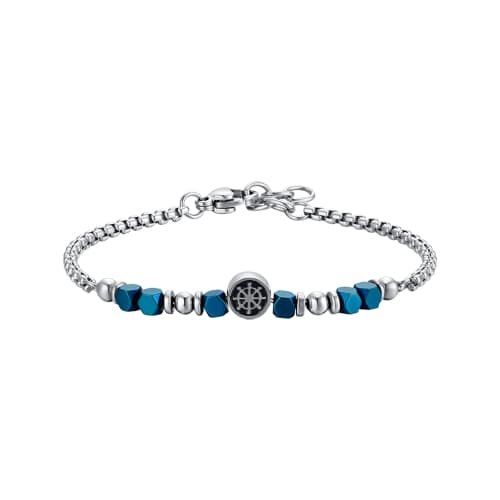 Bracciale Bimbo Luca Barra JB192 Bracciale bambino in acciaio con ematite blu e timone. Lunghezza: 14 + 2 cm. Il timone è un simbolo nautico che rappresenta il controllo e la guida. Indossare un bracciale con un timone può ricordare al bambino l’importanza di essere il capitano della propria vita, prendere decisioni sagge e seguire il proprio cuore nelle avventure e nelle sfide che la vita offre. Referenza: JB192 Articolo spedito con garanzia ed astuccio originale Luca Barra