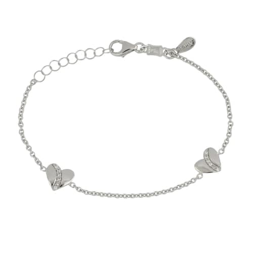 Bracciale da bambina in oro bianco 750/00 (18 kt) con cuori con zirconi incastonati, lunghezza regolabile 12 o 14 cm, dimensioni cuori 0,65 x 0,65 cm, peso 1.50 grammi. Referenza: 803321721833