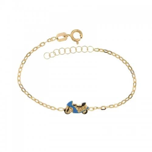 Bracciale da bambino in oro giallo 750/00 (18 kt), lunghezza regolabile da 12 a 14 cm, motocicletta smaltata blu e nera cm 0,60 x 0,90. Referenza: 803321721741 Idea regalo per battesimo o comunione. Non è quello che cercavi? Scopri tutti i bracciali per bambini in oro o i nostri gioielli in oro
