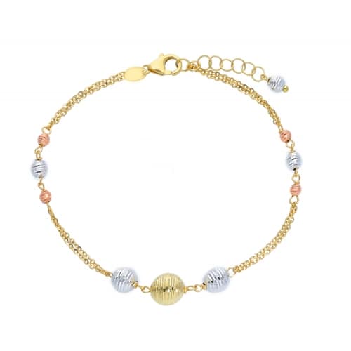 Bracciale da donna in oro giallo e bianco 750/00 (18 kt), maglia doppia catena rolo’ con elementi alternati, lunghezza 19 cm, peso 2,90 grammi. Referenza: 219765