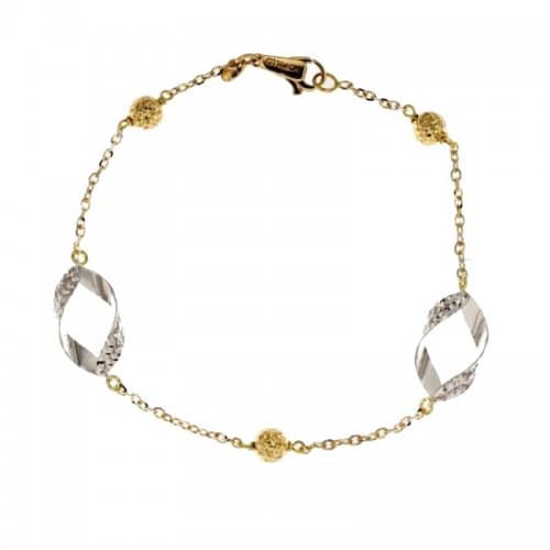 Bracciale da donna in oro giallo e bianco 750/00 (18 kt), lavorazione lucida e martellata, lunghezza 18 cm. Referenza: 803321724444 Non è quello che cercavi? Scopri tutti i bracciali da donna in oro o i nostri gioielli in oro