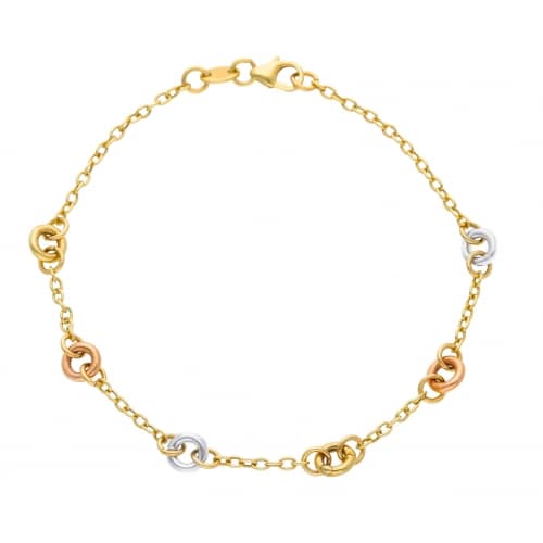 Bracciale da donna in oro giallo, bianco e rosa 750/00 (18 kt), maglia rolo’ con elementi alternati a tre colori, lunghezza 19 cm, peso 2,70 grammi. Referenza: 156402