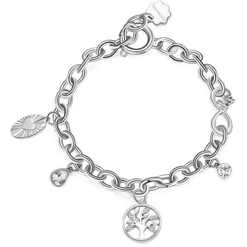 Bracciale Donna Brosway Chakra BHKB116 Bracciale da donna Brosway della collezione Chakra. Bracciale in acciaio con pendenti a forma di albero della vita, cuore, infinito e cristalli. Lunghezza 18,5 cm. Referenza: BHKB116 VITA, FORTUNA, EVOLUZIONE Simbolo della vita in continua evoluzione che si moltiplica nel tempo e nello spazio, rappresenta l’augurio di un’esistenza costruita su solide basi e che sia piena ed intensa. Un portafortuna per iniziare una nuova avventura. Articolo spedito con garanzia e astuccio Brosway
