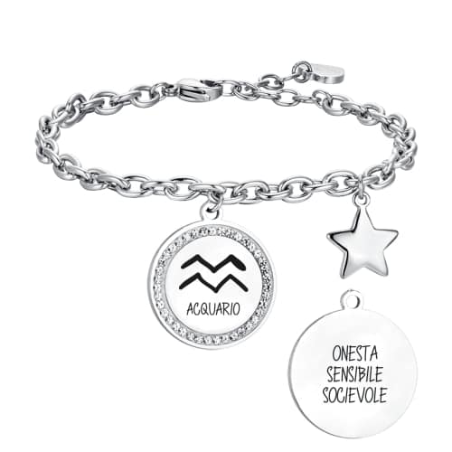 Bracciale Donna Luca Barra BK2551 Bracciale donna in acciaio con piastra con smalto nero e cristalli bianchi. Segno zodiacale “Acquario”. Lunghezza: 16 + 3 cm. Diametro piastra: 20 mm. L’Acquario è spesso associato a caratteristiche come l’indipendenza, la creatività e la sensibilità. Indossare un bracciale che rappresenta il proprio segno zodiacale può avere un significato personale, come un modo per esprimere la propria identità e connessione con le qualità tipiche dei nativi dell’Acquario. Referenza: BK2551 Articolo spedito con garanzia ed astuccio originale Luca Barra