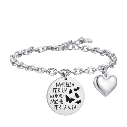 Bracciale Donna Luca Barra BK2642 Bracciale Donna in acciaio Damigella per un giorno Amiche per la vita. Lunghezza: 16,5 + 3 cm. Diametro piastra: 20 mm. Spessore catena: 4 mm. Damigella per un giorno, Amiche per la vita: è un’espressione toccante che sottolinea il legame speciale tra le damigelle d’onore e la promessa di un’amicizia duratura. Mostra gratitudine e apprezzamento per l’amicizia e il sostegno offerti dalle damigelle d’onore durante il matrimonio. È un modo per dimostrare quanto sia importante il loro ruolo nella vita della sposa. Referenza: BK2642 Articolo spedito con garanzia ed astuccio originale Luca Barra