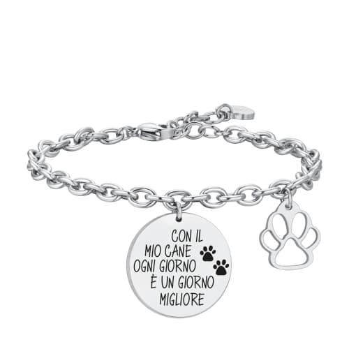 Bracciale Donna Luca Barra BK2646 Bracciale Donna in acciaio Con il mio gatto ogni giorno è un giorno migliore. Lunghezza: 16,5 + 3 cm. Diametro piastra: 20 mm. Spessore catena: 4 mm. Con il mio gatto ogni giorno è un giorno migliore: rappresenta un tributo affettuoso alla compagnia e al conforto che gli animali domestici, in questo caso il gatto, portano nella vita di chi li ama. Acquistare un regalo che celebra la compagnia del proprio gatto è un atto di autocura e benessere. Rappresenta l’importanza di prendersi cura di sé stessi e di cercare il conforto e la gioia nelle piccole cose della vita quotidiana. Referenza: BK2646 Articolo spedito con garanzia ed astuccio originale Luca Barra