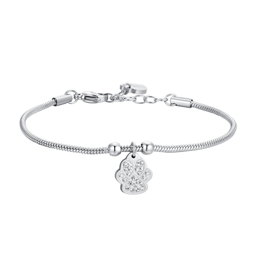 Bracciale Donna Luca Barra BK2654 Bracciale Donna in acciaio con zampetta con cristalli bianchi. Lunghezza: 16,5 + 3 cm. Misura ciondolo: 10 x 12 mm. Spessore catena: 2 mm. Gli animali domestici sono una fonte di conforto e sicurezza emotiva. Indossare un bracciale con una zampetta può simboleggiare il desiderio di proteggere e prendersi cura dei propri amici pelosi, così come loro fanno per noi. Referenza: BK2654 Articolo spedito con garanzia ed astuccio originale Luca Barra