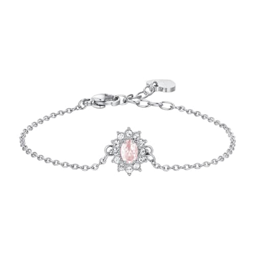 Bracciale Donna Luca Barra BK2735 Bracciale Donna in acciaio con elemento con cristalli bianchi e zircone rosa centrale. Lunghezza: 16 + 3 cm. Misura elemento: 10 x 12 mm. Misura cristalli: 1,8 mm. Misura zircone: 4 x 6 mm. Il design moderno e delicato è arricchito da un elemento centrale decorato con scintillanti cristalli bianchi, che mettono in risalto il brillante zircone rosa centrale, creando un contrasto elegante e sofisticato. Perfetto per dare luce e colore a qualsiasi outfit, sia per il giorno che per la sera. Referenza: BK2735 Articolo spedito con garanzia ed astuccio originale Luca Barra