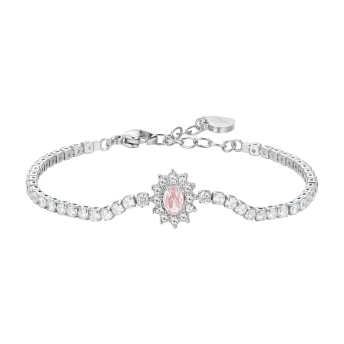 Bracciale Donna Luca Barra BK2737 Bracciale Donna tennis in acciaio elemento con cristalli bianchi e zircone rosa centrale. Lunghezza: 16 + 3 cm. Misura elemento: 10 x 12 mm. Misura cristalli tennis: 2,5 mm. Misura cristalli: 1,8 mm. Misura zircone: 4 x 6 mm. Questo bracciale tennis da donna in acciaio inossidabile è la perfetta combinazione di eleganza e raffinatezza. Arricchito da una fila di cristalli bianchi che brillano con ogni movimento, il vero protagonista è il zircone rosa centrale, che aggiunge un tocco di colore delicato e femminile. Ideale per chi cerca un gioiello che si distingua per la sua luminosità e il suo design moderno. Referenza: BK2737 Articolo spedito con garanzia ed astuccio originale Luca Barra