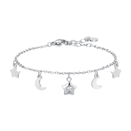 Bracciale Donna Luca Barra BK2823 Bracciale donna in acciaio, stella con zircone bianco, lune e stelle. Lunghezza: 16 + 3 cm. Misura stella grande: 8 x 8 mm. Misura stella piccola: 5 x 6 mm. Misura luna piccola: 4 x 6 mm. Diametro zircone: 3 mm. Scopri il fascino astrale con questo bracciale in acciaio con stella, zircone bianco, lune e stelle, un accessorio perfetto per chi ama gioielli unici e carichi di significato. Referenza: BK2823 Articolo spedito con garanzia e astuccio Luca Barra