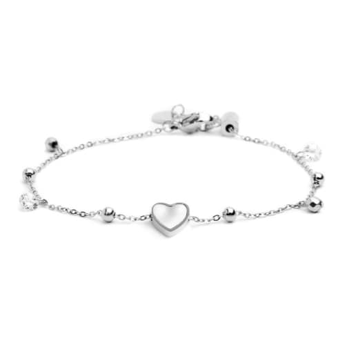 Bracciale Donna Marlù 15BR069-W Bracciale con catena con sfere. Lungo la catena sfere pendenti alternate in ematite e cubic zirconia. Al centro è presente un cuore con superficie frontale in madre perla, sul retro raggi incisi che formano un cuore. Lunghezza totale 19 cm regolabile tramite cursore da 19 cm a 15 cm. Marlù logo tag presente all’ estremità. Referenza: 15BR069-W Articolo spedito con astuccio Marlù