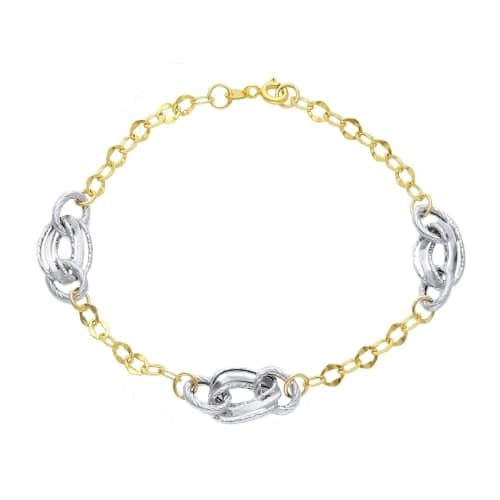 Bracciale Donna Oro Bianco Giallo 9 KT GL-SON177920 Bracciale da donna in oro bianco e giallo 750/00 (18 kt). La maglia del bracciale è a catena modello fantasia con lavorazione lucida e martellata. La lunghezza del bracciale è di 19 cm. Il peso del bracciale è di 2.40 grammi. Referenza: GL-SON177920