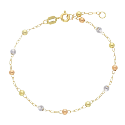 Bracciale Donna Oro Bianco Giallo Rosa GL102000 Bracciale da donna in oro bianco, giallo e rosa 375 (9 KT). Bracciale a catena con sfere lucide. La lunghezza del bracciale è regolabile da 17 a 19 cm. Il peso del bracciale è di 1,30 grammi. Referenza: GL102000 Elegante e versatile, questo bracciale da donna in oro bianco, giallo e rosa 375 (9 KT) incanta con le sue sfere lucide che riflettono la luce con delicatezza. La lunghezza regolabile lo rende perfetto per ogni polso, un gioiello che unisce armoniosamente i toni dell’oro per accompagnarti in ogni momento della tua giornata.