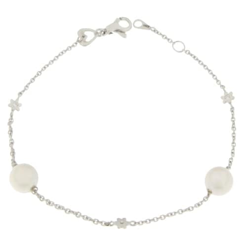 Bracciale Donna Oro Bianco GL100790 Bracciale da donna in oro bianco 750/00 (18 kt). Bracciale modello a catena alternata ad elementi a forma di fiore e perle bianche. La lunghezza del bracciale è di 17.50 cm. Il peso del bracciale è di 2.30 grammi. Referenza: GL100790