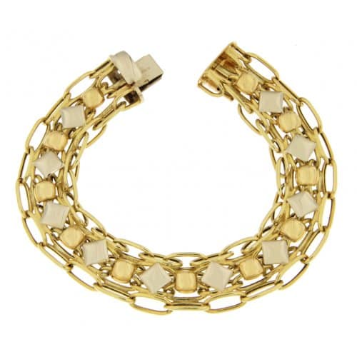 Bracciale Donna Oro Giallo Bianco GL100274 Bracciale da donna in oro giallo e bianco 750/00 (18 kt). La maglia del bracciale è semirigida con lavorazione lucida. La lunghezza del bracciale è di 19 cm. Il peso del bracciale è di 16,70 grammi. La larghezza del bracciale è di 1,50 cm. Referenza: GL100274
