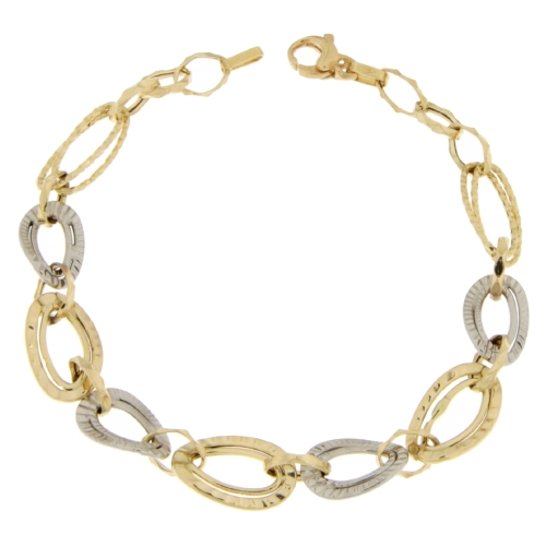 Bracciale Donna Oro Giallo Bianco GL100739 Bracciale da donna in oro giallo e bianco 750/00 (18 kt). La maglia del bracciale è a catena. La lunghezza del bracciale è di 19.50 cm. La larghezza massima del bracciale è di 1.00 cm. Il peso del bracciale è di 4.30 grammi. Referenza: GL100739