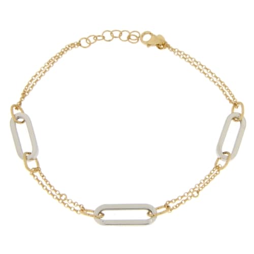Bracciale Donna Oro Giallo Bianco GL101272 Bracciale da donna in oro giallo e bianco 750/00 (18 kt). La maglia del bracciale è a catena. La lunghezza del bracciale è regolabile da 17.50 a 19.50 cm. Il peso del bracciale è di 2.70 grammi. Referenza: GL101272