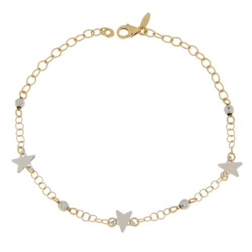 Bracciale Donna Oro Giallo Bianco GL101429 Bracciale da donna in oro giallo e bianco 750/00 (18 kt). La maglia del bracciale è a catena con stelle. La lunghezza del bracciale è di 19 cm. Il peso del bracciale è di 2.00 grammi. Referenza: GL101429