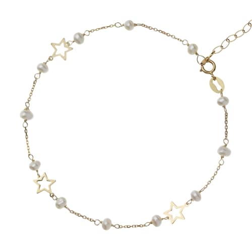 Bracciale Donna Oro Giallo GL100846 Bracciale da donna in oro giallo 750/00 (18 kt). La maglia del bracciale è a catena con elementi a forma di stella e perle. La lunghezza del bracciale è regolabile da 15 a 17 cm. Il peso del bracciale è di 1.40 grammi. Referenza: GL100846