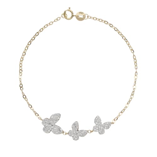 Bracciale Donna Oro Giallo GL100850 Bracciale da donna in oro giallo 750/00 (18 kt). La maglia del bracciale è a catena con elementi a forma di farfalle in resina e zirconi. La lunghezza del bracciale è di 19 cm. Il peso del bracciale è di 1.40 grammi. Referenza: GL100850