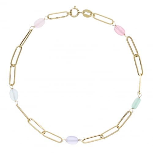 Bracciale Donna Oro Giallo GL101421 Bracciale da donna in oro giallo 750/00 (18 kt). La maglia del bracciale è a catena con pietre multicolor alternate, spessore massimo 0.30 cm. La lunghezza del bracciale è di 19.50 cm. Il peso del bracciale è di 1.20 grammi. Referenza: GL101421