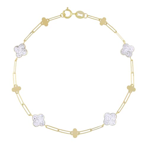 Bracciale Donna Oro Giallo GL102248 Bracciale da donna in oro giallo 750 (18 KT). Bracciale a catena con quadrifogli e pietre zirconi bianchi. Lunghezza 19 cm, chiusura con moschettone. Il peso del bracciale è di 1,40 grammi. Referenza: GL102248 Un gioiello vivace che sprigiona allegria ed eleganza. Questo bracciale da donna in oro giallo 18 kt, con delicati quadrifogli e pietre zirconi, è simbolo di fortuna e stile raffinato. Un dettaglio prezioso perfetto per illuminare ogni look.