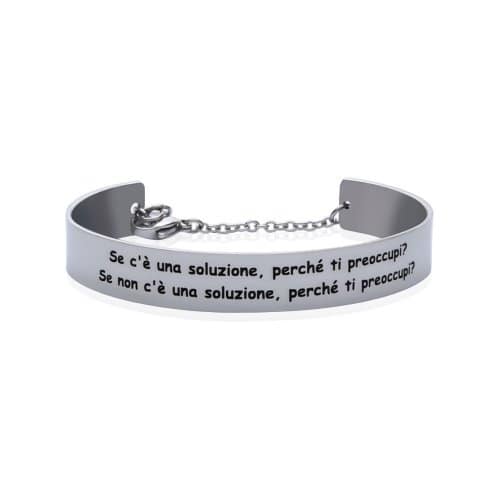 Bracciale rigido Stroili da donna in acciaio con la frase incisa “Se c’è una soluzione, perchè ti preoccupi? Se non c’è una soluzione, perchè ti preoccupi?”. Referenza: 1663102