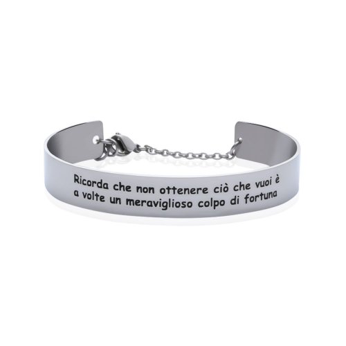 Bracciale rigido Stroili da donna in acciaio con la frase incisa “Ricorda che non ottenere ciò che vuoi è a volte un meraviglioso colpo di fortuna”. Referenza: 1663106
