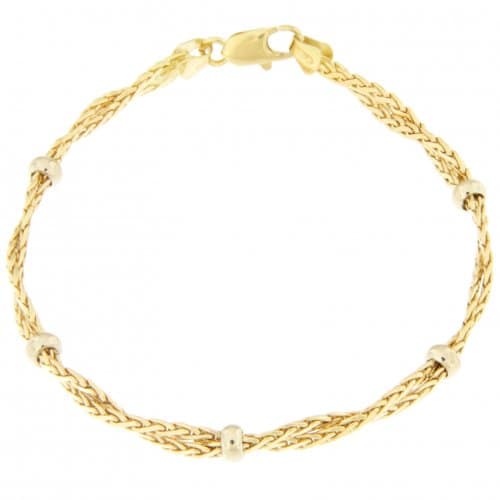 Bracciale Donna Unoaerre Oro Giallo Bianco GL100104 Bracciale Unoaerre da donna in oro giallo e bianco 750/00 (18 kt). La maglia del bracciale è semirigida modello intrecciata con lavorazione lucida. La lunghezza del bracciale è di 19,50 cm. La larghezza della maglia è di 0,50 cm. Il peso del bracciale è di 10,60 grammi. Referenza: GL100104